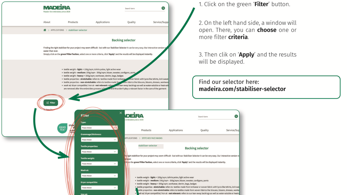Laden Sie sich jetzt unsere Nadel-Auswahlhilfe herunter und erhalten Sie einen Überblick und unsere Empfehlungen zu Nadelsystemen und -stärken für alle verfügbaren Madeira-Garne.