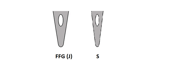 Accordingly, so-called “cloth points” are used for embroidery applications, also known as ball or round tip. They differ in their size and shape. For the sake of simplicity, we use the term "round tip" here. Round tips with a small ball displace less fabric than round tips with a large ball.
